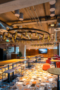 Een kantoor met systeemplafonds? Niet meer van deze tijd. Dat zien ze ook bij Kühne + Heitz. Een mooie ontwikkeling, want veel mensen brengen hier per week toch zo’n 32 uur door. Ruimte doet iets met mensen. Een fijn kantoor en goede verlichting maken van je werkdag een feestje. Of wij de verlichting voor dit prachtige interieur, ontworpen door De Horeca Fabriek, wilden verzorgen? Kom maar op, daar wisten wij wel raad mee.