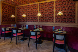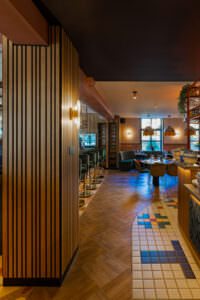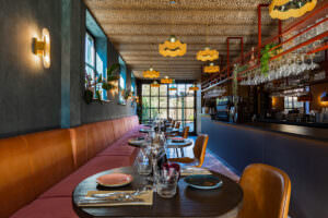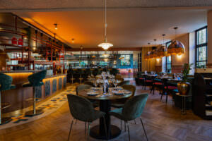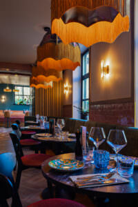 Met licht kun je spelen. Door het te dimmen. Door spots anders te richten. Door schaduwspel, dankzij de vorm van armaturen. In dit restaurant geeft dat een intieme sfeer. Voor je het weet zit je al de hele avond te kletsen en ben je het laatste tafeltje dat overblijft. Dan weet je: dit was een geslaagde avond.